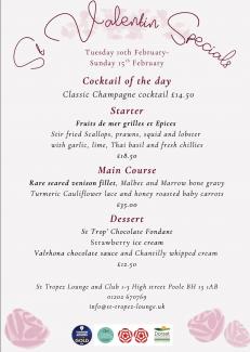 Home Bertinet's Gin Celebration party 15 January, 2026 - 0 Comments Valentines Specials 15 January, 2026 - 0 Comments Events Restaurant and Club Winter 26 08 January, 2026 - 0 Comments French Evening January 08 January, 2026 - 0 Comments more French & Fresh Tapas See Menu Poole Oyster Bar Cultivated in Brownsea Island Bay, by Dorset Oysters See Menu Fine Wine See Menu Breakfast & Patisserie See Menu A-La-Carte Available from 11:30am Tuesday to Saturday See Menu Cocktails Discover our range of cocktails. See Menu Contact Us St TropezĀ LoungeĀ is now open on Poole Quay. 1 High Street, Poole, Dorset BH15 1AB info@st-tropez-lounge.uk 01202 670769 Send a Message Newsletter Signup Email
