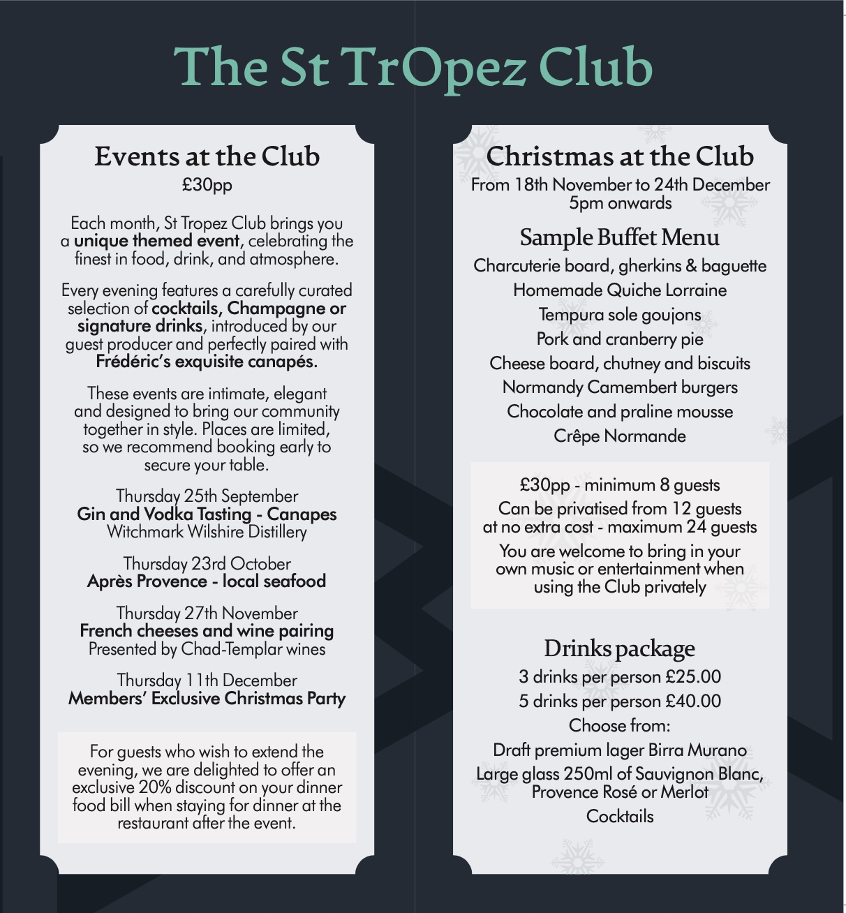 St Tropez Club Menu