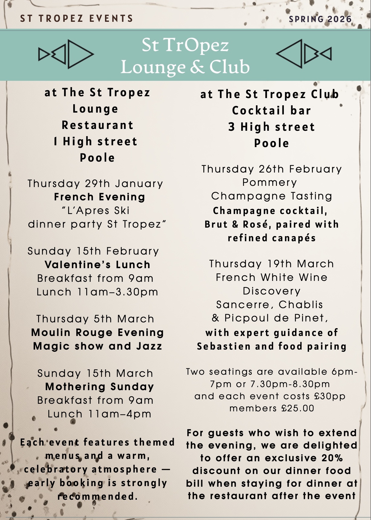 Events Restaurant and Club Winter 26