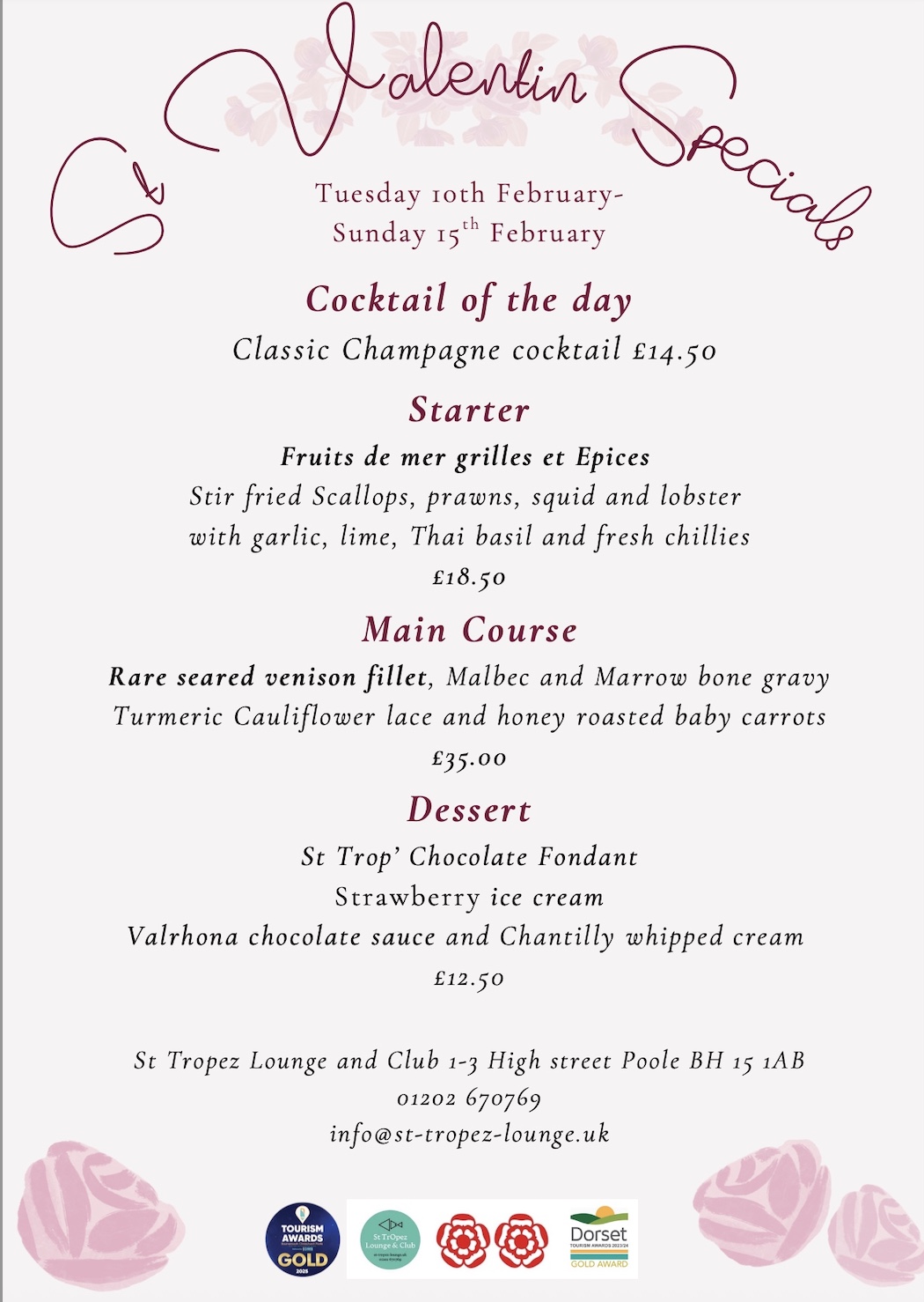 St Tropez Club Menu